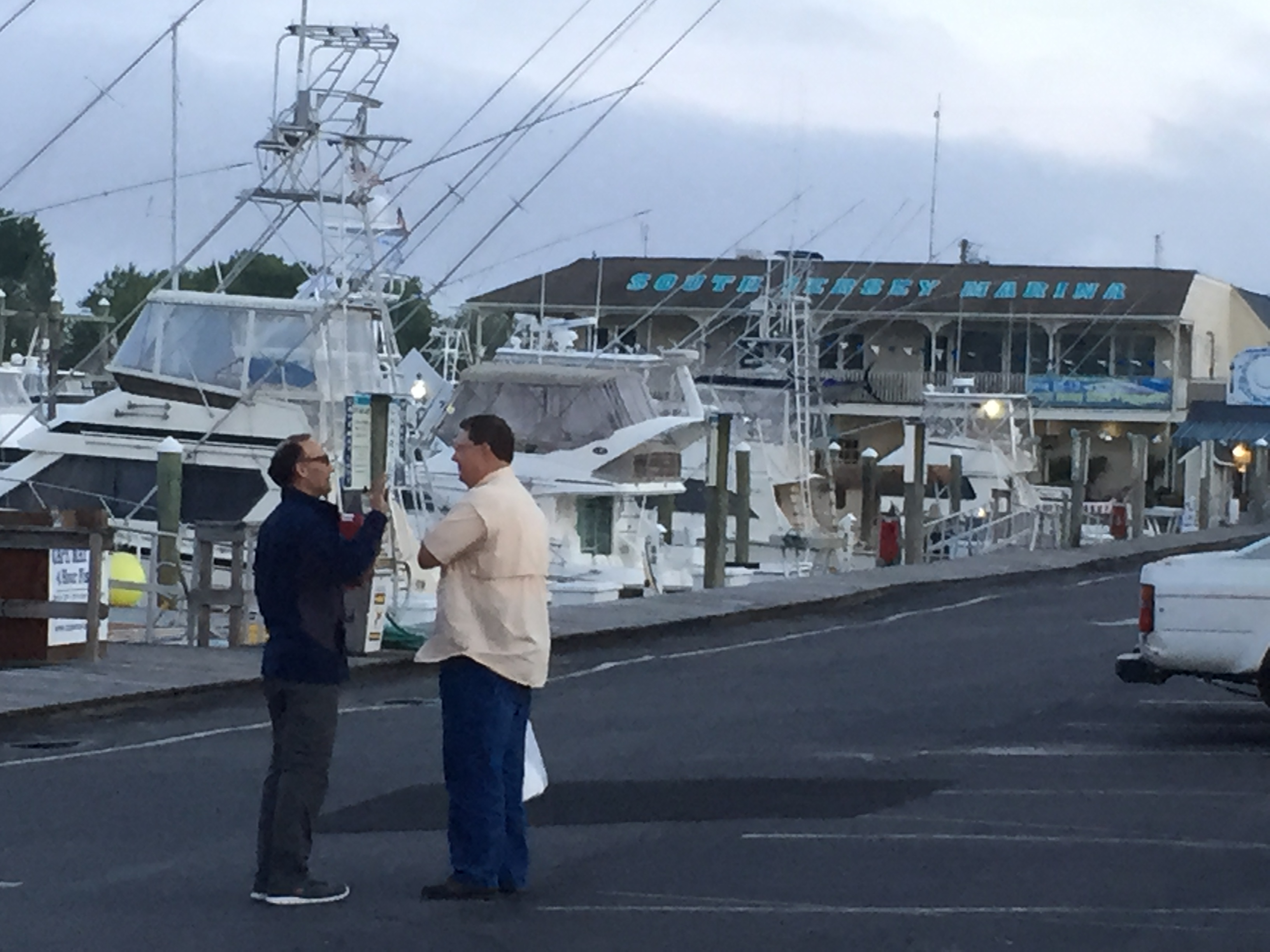 Friday, 6/5/15 – We woke up to cold, rainy weather and the wind blowing like crazy. We spent the rest of the day trying to figure out our next steps. It was clear that the weather was not going to be favorable for a few days and we needed to rethink our plans to get up the coast of NJ and into NY. Denise had to fly to Houston on Monday and we needed to make sure there was a place for Mark to stay with the boat. With two days left to go if there was a chance to get to Staten Island, NY we really wanted to be there. It would offer easier access to an airport and get us back on our original schedule. We researched and looked at all the options, including taking the slower, shallower route up the NJ ICW. We asked the opinion of a local fishing Captain (“I would never take my boat up the inner route”) and if we got it to Atlantic City where would he stay (he wouldn’t – too seedy a place). We listened to an AGLCA’s podcast regarding going up the NJ ICW and it was suggested that you should never attempt it on a weekend; there are just too many boaters on the water. Here we were facing a weekend of ICW if we chose this route, and uncertain we could make the final leg into NY before Monday.
