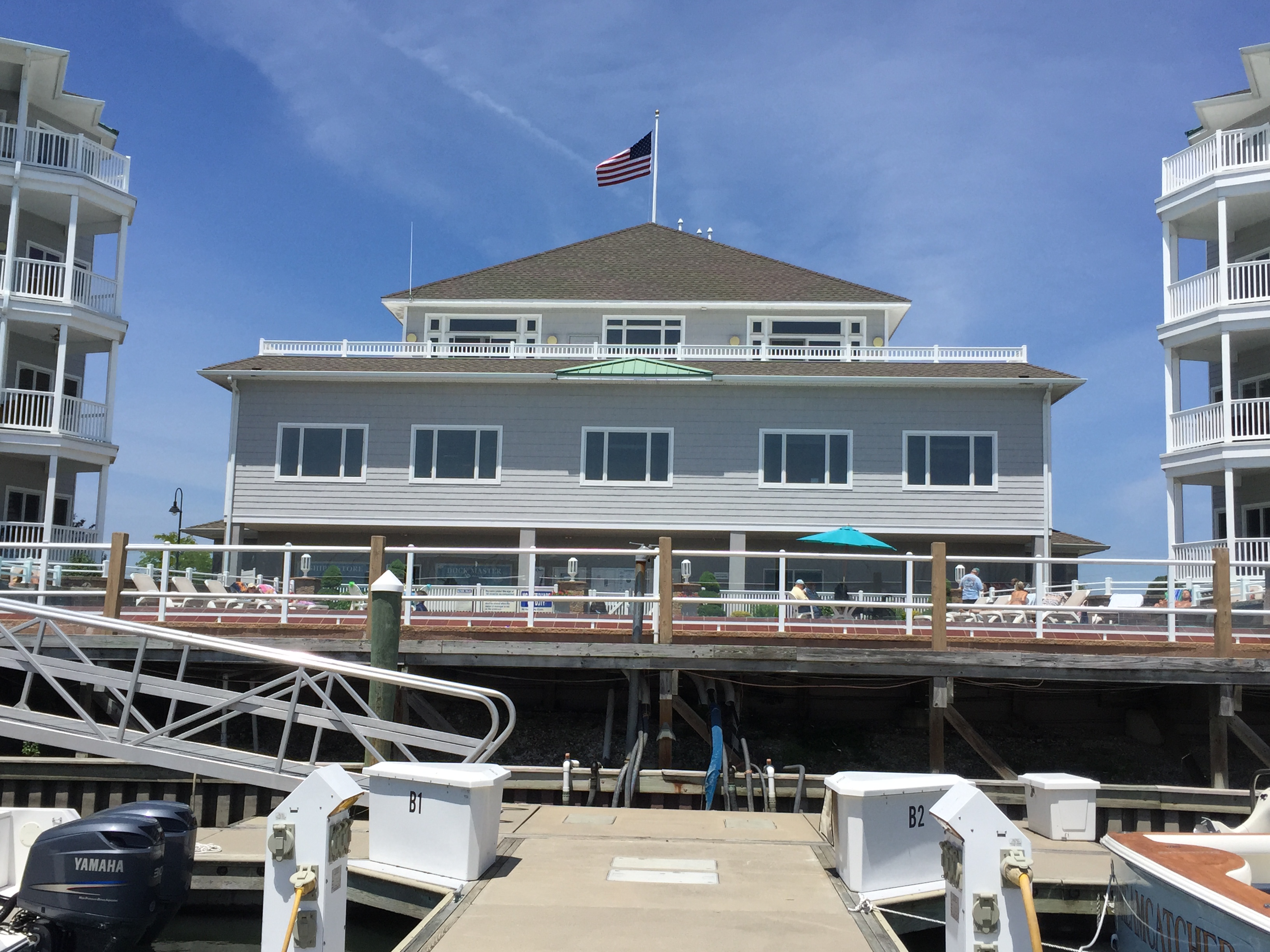 Sunday 6/7/15 – The storms from yesterday ushered in cool weather again, so we woke up to needing sweatshirts, at least until the morning sun was able to warm things up a bit. Although the sky was blue and there were not clouds, the wind was still blowing a bit with forecasts of increasing throughout the day. We eventually moved the boat to Canyon Club Marina and got them to take Mark back to South Jersey Marina so he could retrieve the rental car. Although this marina is nice and has a pool (not that we will be putting our toes in the frigid water), it is still not as nice as SJM. We will miss the very good dockhands there, the wonderful amenities, and the closeness to the town. It is also a huge fishing boat marina, so there are not as many cruisers to hang out with. Mark will just have to get by!