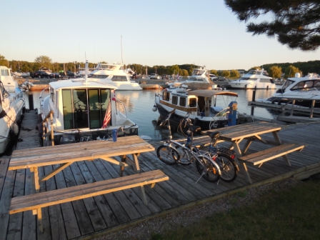 Once we moved to our slip, we got our bikes and went to the marina office to check in. We took our bikes because this marina is HUGE; the largest fresh water marina in North America, with over 700 slips. We also rode down to our friends on “Renegade” who called us on the VHF radio when we were at the fuel dock; they had spotted us coming in and wanted to let us know they were there. So we made plans to have dinner together at the marina restaurant (Henry’s); the only one in the area of the marina.