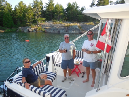 As is becoming a custom with the three of our boats, we had happy hour; but tonight it was aboard Island Office. As the weather was breezy and so pretty, we opened up the whole back of the boat and enjoyed planning for the next day’s venture up to Killarney.