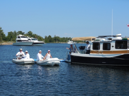 Again the weather was sunny and the winds were calm. We had mapped out several possible anchorages in Beaverton Bay, but were lucky enough to find plenty of room at the first one; behind Burnt Island. Originally there were two boats in the cove when we arrived, but one was leaving and the second (Fleming 55) stayed. It provided plenty of room to anchor, and all three of us did so without any difficulty. Before lunch we had dinghies and paddle boards in the water and we were anxious to check out the surrounding area.