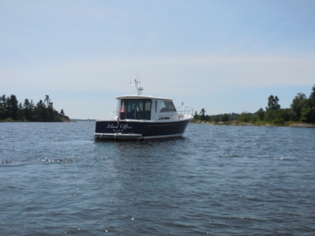 While in the locks we were (once again) visited by Canadian Border & Customs. While it is not uncommon for them to check on the boats leaving the TSW, we were the only ones they asked questions of. As usual, they asked us the standard questions; where are you headed, what is your boat name (duh – it is on the back of the boat), when are you leaving Canada, etc. All the while they are writing our CANPASS number on their handwritten notepad. I guess technology hasn’t arrived at the Canadian Border & Customs agency yet! We (of course) passed without issue but we were beginning to wonder if we had a target on us.