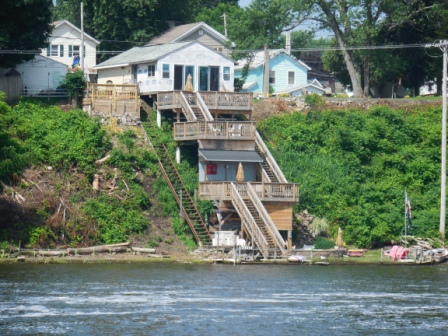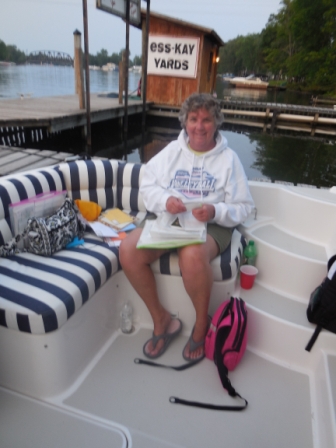 Saturday (7/4) – In the morning Denise went for a short run that took her past the old site of Fort Brewerton. In the afternoon she and Mark relaxed on the boat, visited with other loopers, and did a little email and work for our business. Later in the afternoon Jeanne and Vicki showed up and we all went to a local restaurant (“Waterfront Tavern”) for dinner that overlooked the Oneida River. We introduced them to our looping friends and they had a chance to see the camaraderie we experience every day.