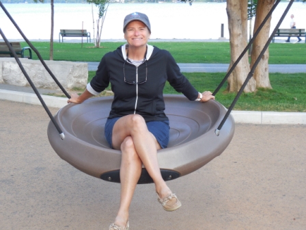 After dinner aboard the boat, we went for a walk along the Riverwalk that lines the bay. There is a terrific bike path and park with swing sets for the kids – big and little alike. It was a beautiful night and made for a nice walk.