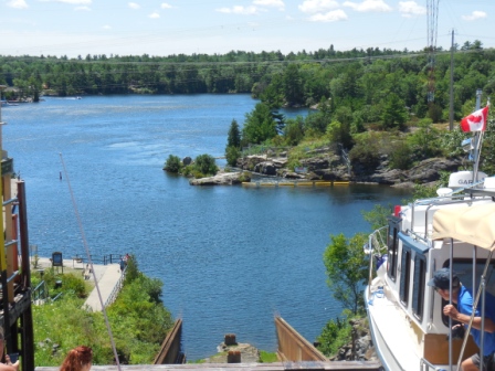 When we got to Fenlon Falls Sandy, Matty & Abbey were there as they had stopped to see us go through the locks. It was so crowded and full of people we decided not to stay the night but to press on. It was beyond crazy and there were so many boats trying to get through the lock there. We had 12 boats in our lock-up and in one place 4 of them were rafted together. Not much moving room and certainly not the place we wanted to be.
