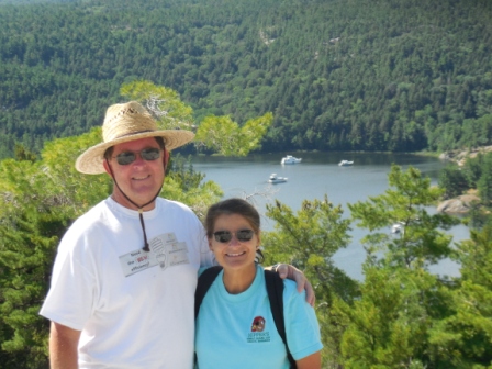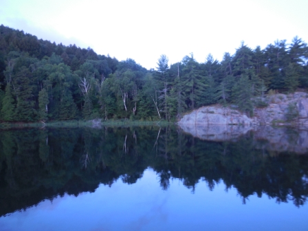 The hike was about 1000 feet in elevation on a well-marked trail over rocky (granite & quartz) terrain that could be slippery if you didn’t plant your feet properly. Along the way we met a group who had been camping and canoeing all the surrounding lakes; they were carrying their canoes down the trail when we were climbing up.