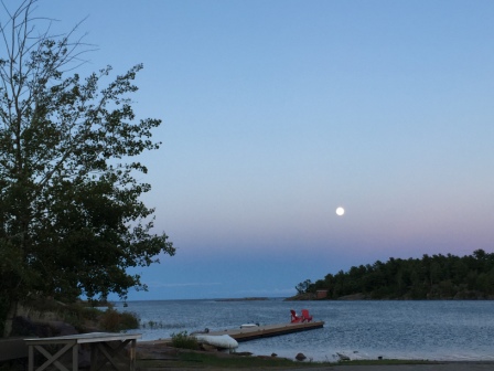 After dinner we saw Tim & Karen out fishing in their dinghy so we invited them over to share our cookies. We discussed future stops in the North Channel, if we could get reservations in Little Current for Sunday, and what if we could not. There were several options on the table, but without communications we would not know any more until Sunday when we were to leave.