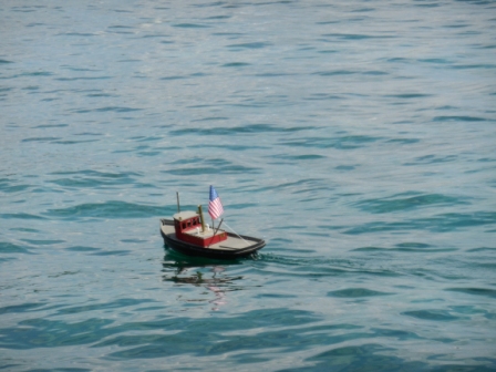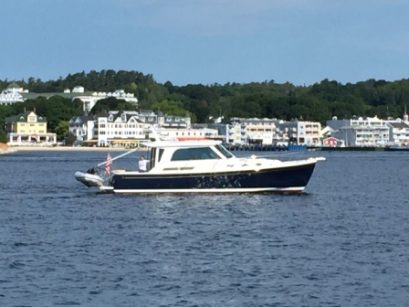 It was sunny and beautiful, with no wind to kick up a sea. We passed by Mackinac Island and stopped with TiKa to take pictures of our boats with the Island in the background.