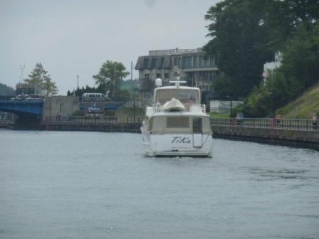 That evening we had TiKa over for docktails, then we all walked into the small village and ate dinner at a restaurant called Mainsail. There were only three to choose from and we chose the one that was closest to the marina. The food was ok and the service was slow, especially considering there were only 2 other parties in the restaurant. But, it was no big deal as there was nothing we were in a hurry to go do. We spent most of the time discussing our plans for the next day. The weather looked great for a crossing of Lake Huron, past Mackinac Island, and going directly into Mackinaw City.
