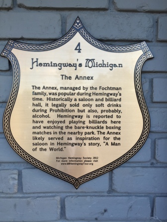 We then walked through town and went to a restaurant called “City Park Grill” which is one of the oldest establishments in town. It is known as being a hang-out of Ernest Hemmingway when he lived in Michigan. The bar (still held over from the original restaurant’s heyday of the 1920’s) has a burn mark in it near the seat where Hemingway would actually put out his cigar.