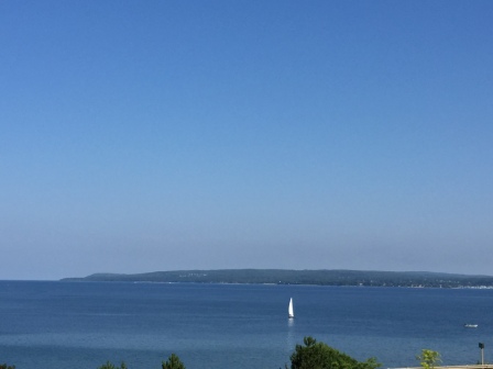 We cruised another long day of almost 50 nm down the Michigan coast until we came to Little Traverse Bay and the town of Petoskey. We entered the city marina only to find several other looper boats, including “Gypsea” whom we first met in Coinjock, VA, and two others who would be completing their “loop” in the next few days as they are from Michigan ports.