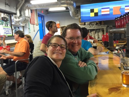 Tim & Karen (“TiKa”) decided on a land-stay and checked into a local hotel that overlooked the harbor for a two-night’s visit, leaving Mark – the younger on the boat alone. We met all three of them for dinner at one of the local microbreweries (Bridge Street Tap Room) where we had sandwiches. The food was good and the view was terrific.