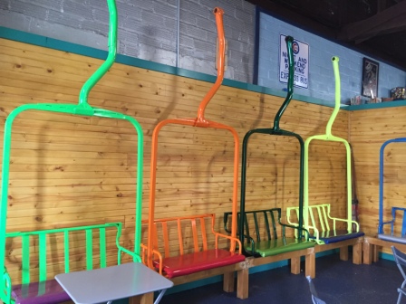 After dinner we walked down to one of the ice cream shops we had discovered during the day. It is really the town candy store that also sells ice cream and they have the most unique seats; old ski lift chairs.