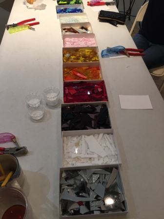 After breakfast Claire & Denise took a glass fusion class from a local artist named Jilly. She has an amazing glass sculpture on the wall in her gallery that one second prize in an art show in 2014. You can check it out as well as more about her here. We enjoyed learning about how to score and cut the glass pieces and how to glue them together before they are fired in the kiln. Our own creative pieces will be ready on Thursday morning which works out great as we are staying in Pentwater until Friday due to windy weather. Mark had some work to do and stayed on the boat to get it done.