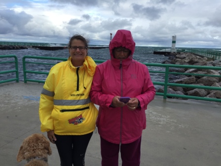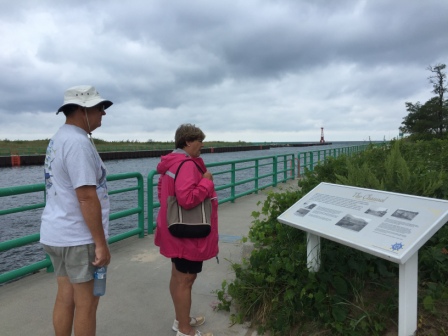 Saturday (8/22) – Grand Haven, MI – It was a nice morning for a walk, so Claire and Denise put on their shoes and started with a hike down to the lighthouse on the South Pier. There were many people out walking or running, so we were in good company. We walked past the Coast Guard station and memorial they have along the water that pays tribute to all who have served and lost their lives on the water.