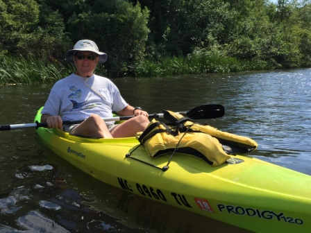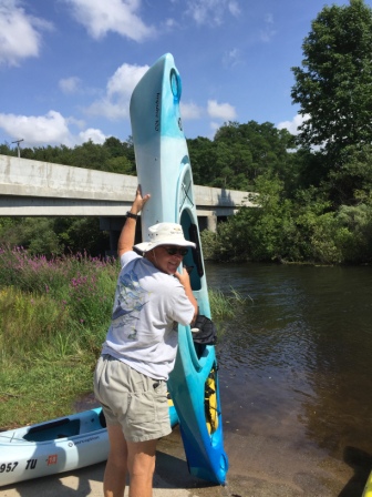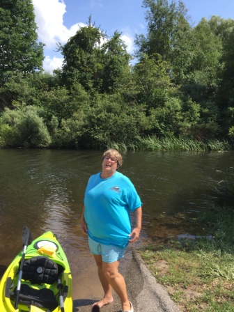 On the way back to the boat we stopped by Pentwater Outfitters to investigate the possibility of renting kayaks. After talking with owner Gregg about where we could go in such windy conditions, we were still undecided whether we should go or not. We went back to the boat for lunch and decided to go up the North branch of the Pentwater River and called back to the store to inform them. At 2:00 Gregg & his associate/girlfriend Bonny came by to pick us up at the marina and drop us at the entrance to the river branch. This would allow us to kayak downstream and enjoy the protection of tall trees and high grasses. Presumably this would protect us from the winds which were continuing to build.