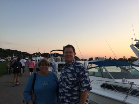 When we arrived our boat was assigned to the very first slip in the marina; adjacent to the grandstands. Needless to say, lots of people were looking at our boat and we received many positive comments about it and the name. But because it was first in line, it also took the brunt of the eastbound swell coming in from Lake Michigan, and we were bouncing. However, we did have great seats to watch the show!