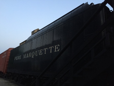 After we finished walking this area, we continued on the eastern part, passing the charter fishing boats and coming to another park. Here they have an old train and steam engine the town has restored, and is now a play area for kids. This is a very cool and family-friendly area. It was getting dark so we headed back to the boat.