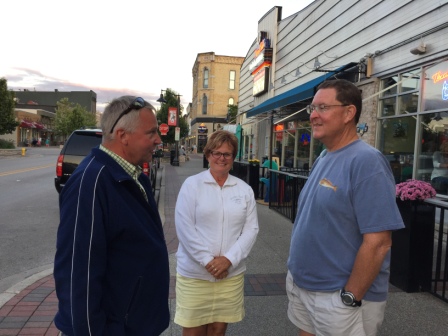 After getting checked in and settling the boat, Claire & Denise went walking in the downtown area. This (naturally) involved going through the shops on the main street and up a few of the side streets. We came to the conclusion that all of these little towns along the Michigan shoreline have many of the same shops and are all starting to look alike. Yet, each has something unique and different; this one has the CG and the Musical Fountain. In the meantime, Mark went and got the rental car for tomorrow’s drive into Grand Rapids to take Claire to the airport.
