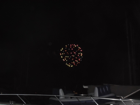 Shortly after 10:00 pm, the fireworks show started. Denise stayed up to watch, but Mark was tired and went to sleep. We were planning an early start tomorrow and he needed his “beauty rest”. The show was terrific and the reflection of the fireworks off the downtown buildings was spectacular. A perfect ending to a day that started so not-perfectly.