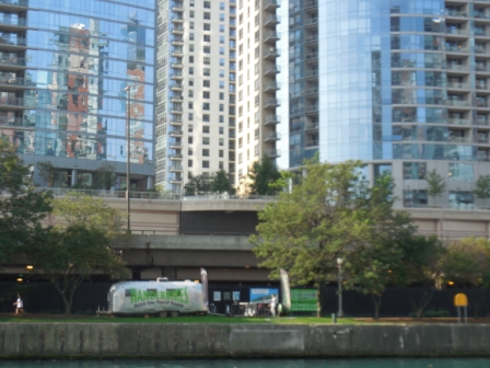 Some local boaters on our dock told us of a great hamburger joint, so we walked up the Riverwalk along the Chicago River and got a burger at Chicago Burger Company. It was delicious and hit the spot! We sat outside along the river and watched all the tour boats, private boats, kayaks and ferries coming and going. Many were heading out to the lake so they could watch the fireworks scheduled for later in the evening. It was pure Saturday night craziness.