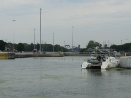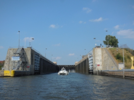 Finally, at 12:30 we were allowed into the lock with all the other pleasure boats. We had waiting 4 hours at the sill and 2 hours in our marina just to get through this lock. We were happy to leave it behind.