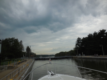 About the time we got retied to the sill, the skies opened up and a horrendous storm came through. We watched one of the boats that had decided to “motor in place” get blown all around until they got smart enough to tie to one of the sill walls. There is a saying in boating: “You are either the show or watching the show”. We all watched this guy and if it wasn’t dangerous, it would have been a hilarious comedy routine.