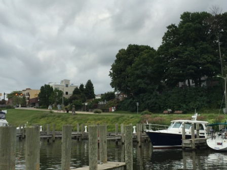 The entrance to this town was quite narrow and the waves were very choppy coming in through the breakwater, so Mark drove and got us safely into our slip. We arrived just before lunch and opted to eat it on the boat. After lunch we went for a quick walk through town to see the (now all too common) shops and to scope out a potential spot for dinner. Looper friends Dave & Betsy (“Fryedaze”) had also come in behind us and we agreed to have docktails in the evening.