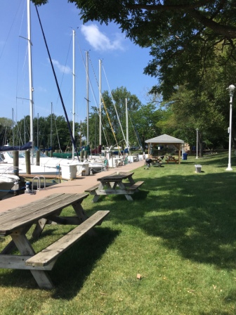 We really like this small town and the parks along the harbor walk that takes you to the South Pier light. Additionally, the marina accommodations are very nice, including a boater’s lounge with a microwave and coffee always on. There are bar b que grills and a very nice covered picnic area which provide a protected place to get off the boat. Too bad we couldn’t have been here instead of Grand Haven when the weather was so awful.