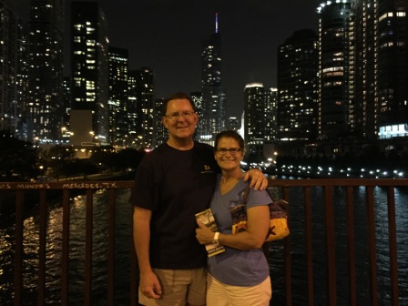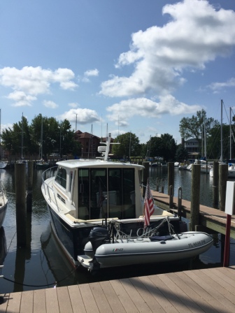 As we entered the marina we passed by two yacht clubs (Chicago YC & Columbia YC), both had Looper boats in it that we knew. When we entered DuSable we saw lots of Looper flags and immediately spotted our friends Sid & Evelyn (“Something Special”). We stopped by their boat briefly to say hello and then we went off to go get dinner, making plans to connect with them again. We also ran into Loopers Kenny & Kathy (“No Zip Code”) whom we met originally in Deltaville, VA and saw along the Chesapeake, but had lost track of them since.