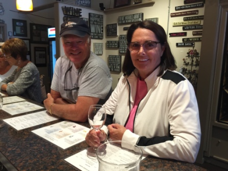 In addition to the typical t-shirt shops, surfing shops, vinegar & oil shops, and spice shops, they had a wine tasting room for White Pine winery. We decided to go in and give this Michigan winery a chance to delight us. We shared a tasting and found several that we thought would be fun to have, so we purchased a few bottles to take home.