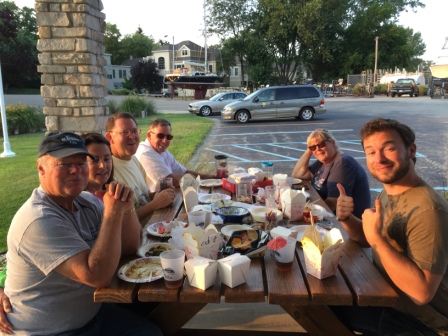 Of course no night would be complete without docktails with our Looper friends. So, we got together at the picnic tables near the marina office and boaters lounge to share appetizers and drinks. Also, because the marina was so far from the downtown restaurants, we had previously decided to get Chinese take-out for dinner from Chan’s. When we were in town earlier in the day we went by the restaurant and confirmed that they would deliver to the marina. So, we put in a multi-family order and it was delivered on time and without any issues. The food was good and everyone got their fill. The best part is there is plenty left over for another meal.