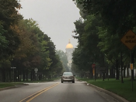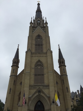 Sunday (8/30) – Michigan City, IN – Side trip to South Bend, IN – Today was a crazy but fun day. Since we had a rental car we wanted to take advantage of it and go see the University of Notre Dame. We got on the road by 8:15 with anticipation of driving the 50 minutes and being there in time to park, walk, and make 10:00 mass at the Basilica. The only problem was we forgot about the time change; they are on Eastern Time and we lost an hour. Unlike on I-10 in the FL Panhandle, there was no sign on the highway advising you of the change, and of course we didn’t think about it. The guard at the campus gate advised us that there was another mass at 11:45, so we made plans to go then – but we had time to kill.