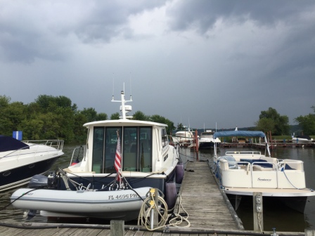 Although some stay here, there were no Loopers to socialize with at the marina. But, we didn’t care as we were exhausted and wanted sleep more than anything. It had been another very long and hot day. Fortunately, there was cloud cover all day, and the rain was all around us but we never got any. Life is good!