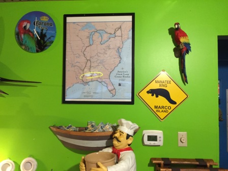 After very refreshing showers and a well-deserved cocktail, we went to the restaurant that is located at the marina for a pretty decent affordable marina. This is definitely a “locals” place and it reminded us of our home marina (Harbortown) in Merritt Island and the restaurant/bar they have there.