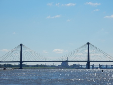 Tuesday (9/15) – Hardin, IL – We left Havana at 7 am hoping to make a lot of miles today. With only one lock, we were hopeful we would get through it without too much delay and be able to get to Hardin and tie up to a dock at a restaurant for the night. If that didn’t work, then we had plans to anchor out not far from there. Although not in a hurry, we are now bored with the Illinois River and anxious to move to the Mississippi where there is a change in geography and the landscape.