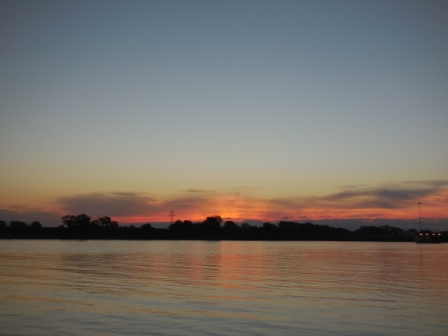 Just around dusk we saw a tow coming upstream and as it started to align up to go under the bridge. All of a sudden we heard the engines roar as it threw on the reverse and tried to stop. The bridge was not up and it was going to hit it. Fortunately, the tow operator managed to stop it, but it was close. Monty (“Dream Girl”) had been listening to the VHF radio and heard the whole conversation between the tow and the bridge operator. Apparently the bridge broke and he couldn’t lift it. The tow pilot was as cool as a cucumber and pulled it along the shoreline opposite us and waited.
