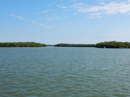 Shortly after that we went through the Coon Key Pass and entered the Gulf of Mexico. Here we found seas of less than 1 foot, and we were happy that we had taken the inside route. We continued for another 30 minutes cruising along the coast of the Ten Thousand Islands National Wildlife area. We then turned left and headed east through the Indian Key Pass. Here we followed the channel through the mangroves and small islands that took us into Everglades City.