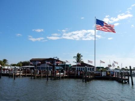 Monday, (1/11) – Everglades City, FL – In the morning, Mark contacted the local TowBoatUS representative who confirmed what we thought; there is an inside route from Marco Island to the 10,000 islands and the entrance to the Everglades. We could take that route to avoid going out into the Gulf, and all the way around a huge shoal area south of Marco Island that would lengthen our trip. So we left the marina just before noon to allow us to transit the areas with the shallowest water on a rising tide and found no problems all the way to the Gulf of Mexico. Along the way we passed a few interesting sights, including the Old Marco Lodge & Crab house on Goodland Bay – which has been around since 1869.