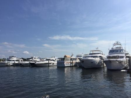 Our original plan was to anchor out here one night, but when we saw our Looper friend’s boats (“Endoxi” & “Sassified”), we changed our minds and sought out a marina slip where they were at Old Naples Seaport Yacht Association (aka marina). Fortunately, they put us in the slip right across the dock from them; how convenient. Shortly after arriving Pete & Rodney showed up (Pam and Sharri were still out shopping) and the guys made arrangements for docktails on “Sassified” for 5:30.