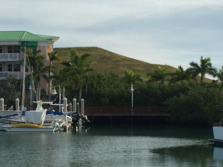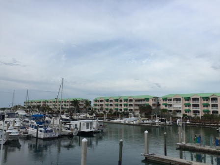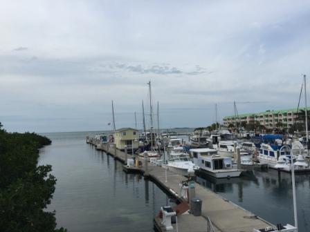 The marina is bordered by four 3-story condo buildings to Southeast, the Monroe County Juvenile Justice Center (and Jail) to the Southwest and West, a large landfill behind the condos, and the Florida Bay to the North. Across the street and up the road is an elementary school, a Community College, the County hospital and the Key West Golf Course, which is open to the public. Also nearby are two naval air stations and we continuously hear the jets or helicopters taking off and landing, or just running their jets. We also hear the never ending sounds of ambulances going to the hospital making for a sometimes a noisy place.