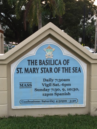 Because of the race on Sunday we went to the 6:00 pm mass at the Basilica of St. Mary Star of the Sea. However because of our large group and how crowded it was, all 13 of us had to spread out across three different pews. Coincidentally, the principal of the school associated with the church was at the same mass and spotted Claire, John & Johnny. He used to teach at John Paull II (Catholic High School in Tallahassee) and moved to Key West a few years ago as his wife is from here. What a small world!