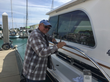 Friday (1/15) – Key West, FL – The rain continued in the morning but fortunately we had no leaking water. It looked like we had identified the source, so Mark made some phone calls and found a local person who could do a permanent repair for us. Jorg (George) is from Germany and is a certified master boat builder. He came by and gave us an estimate, and we scheduled him to do the repair work beginning on Monday. Denise spent the rest of the morning finishing her book while Mark did some work for clients and then returned the rental car back to the airport