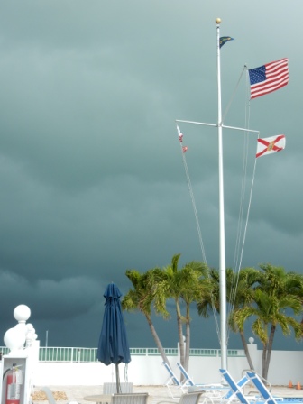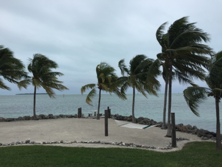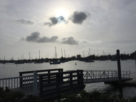 Tuesday (2/16), Marathon, FL – In the morning it was cloudy and very breezy. We watched a storm blow in off the Gulf of Mexico towards the yacht club and really kick up some wind.