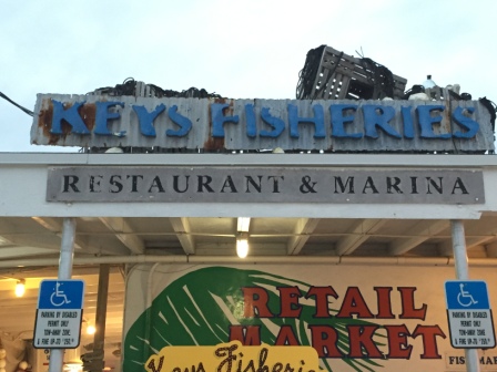 After we got the car unpacked, we went over to the Key’s Fisheries located just a few blocks from the marina. Here we got some dinner and then checked out their stone crab claw prices in their market. Denise had gotten some at Whole Foods while home and discovered that Key Fisheries was their source. The prices, remarkably were the same price, but Whole Foods is not fresh off the boat.
