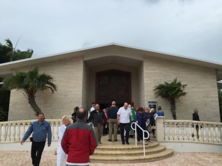 Sunday (2/7), Marathon, FL – It is Super Bowl Sunday and we felt like they had played the game on our boat. The whole night the wind continued to howl and it continued to rain off and on. When we woke in the morning it was cloudy and overcast, but not as cool as was expected. However, it did start to rain just as we headed out to attend mass at San Pablo Catholic Church, located about 4 miles from the marina. We were grateful we had our car and did not have to worry about getting transportation to go to church in these conditions.
