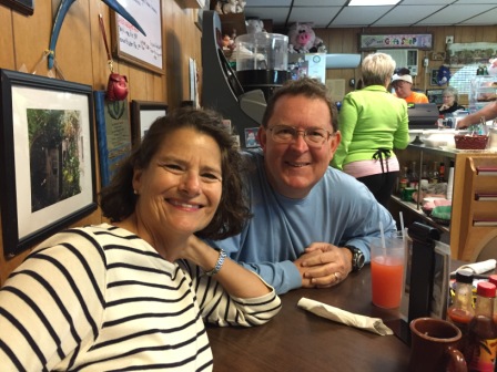 After church we went out to breakfast (something we rarely do) at “The Stuffed Pig”. This is a small restaurant around the corner from the marina that only serves breakfast and lunch. It has an outdoor eating area as well as the small dining room, but the inclement weather had it closed so everyone had to wait on indoor seating. Fortunately, we only had a 15 minute wait. The food was good and the place was lively with a lot of fun treasures all over the walls. We had an opportunity to talk with the hostess who come to find out was a former Eastern airline flight attendant. Mark’s mom worked for Eastern before she retired so we had something to discuss with this woman.