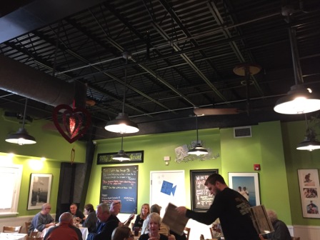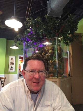 However, after mass we were hungry and wanted something to eat. Many of the restaurants in this area are closed on Sunday, so we went having any luck finding a place to eat as we drove west. Eventually, we turned around and headed back to the Square Grouper. Normally they are also closed on Sunday, but because of Valentine’s Day they were open, and they were packed. Instead of wasting time waiting on a table, we opted for the bar and had another delicious meal. Mark had a fish sandwich and Denise had their grilled fish tacos which were excellent! The people next to us got the homemade tater tots – really just fried mashed potatoes – that also looked really good.