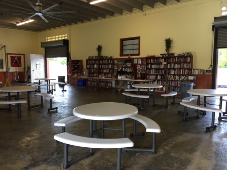 Boot Key Harbor has 237 mooring balls and all were full, with another 50 people on the waiting list – all at local anchorages. This is drastically different then when we had High Flight here in 1995 and there were maybe 50 mooring balls then. But, it is a nice facility with a huge cruiser’s pavilion that includes picnic tables with internet Wi-Fi, TV cubicles, and a large book exchange a very friendly welcome by the receptionist. The area also includes many shower facilities, a huge dinghy-dock area, washer/dryer facilities and an entire pavilion where you can work on your boat/dinghy equipped with lockers for your tools or work-in-progress items. Since it is a harbor with almost 360˚ protection it offers mariners great protection and is a well-known in sailing/cruising circles.