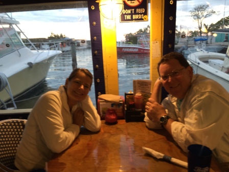 Later went to dinner with them at Don Shula’s Steakhouse, not far from their hotel. We had eaten here before, and while the steak was delicious, their service was really bad and we were very disappointed. It is clear this place is not as good as it used to be. As we were leaving the restaurant we ran into Looper friends Mary and Brad (“Dollinger”), whom we last saw in Green Turtle Bay, but met one of our first weeks on the Loop in North Carolina. What a small world!